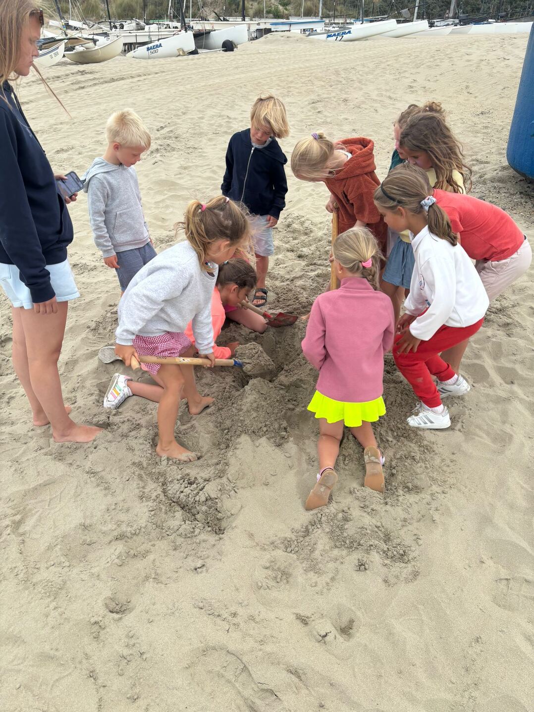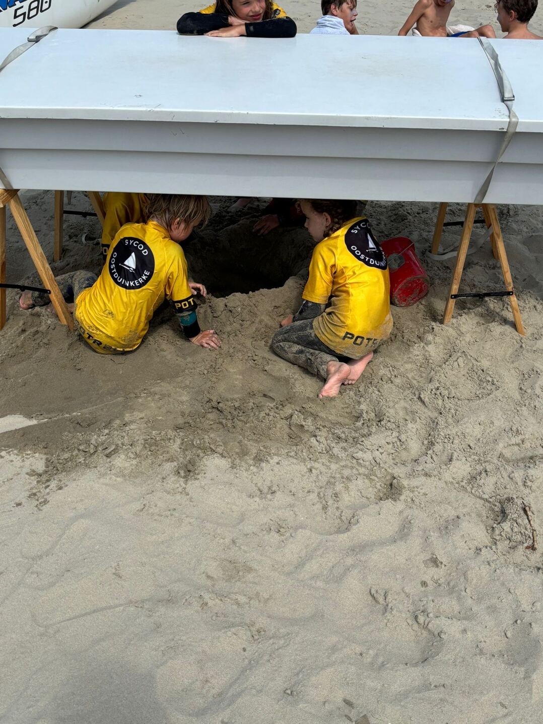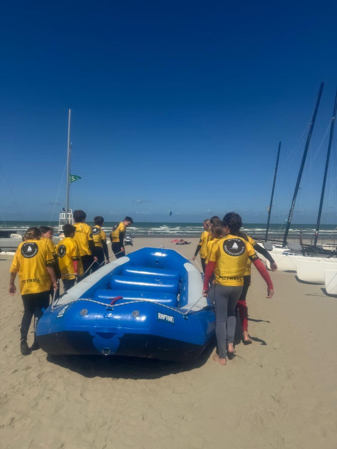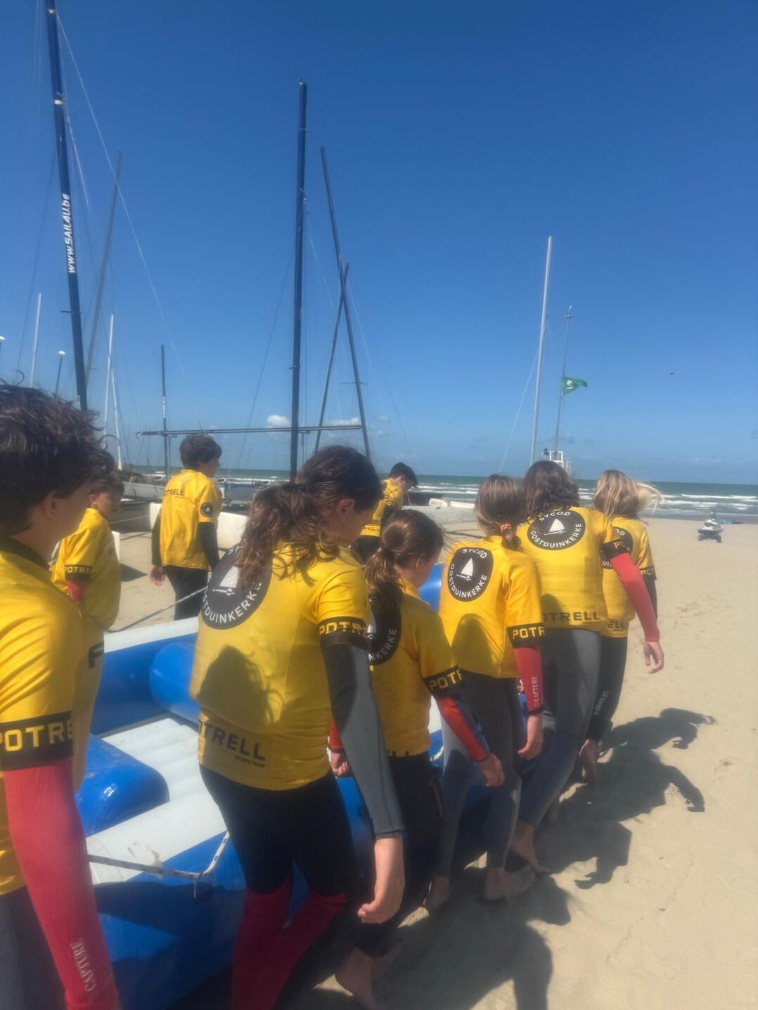 3. De ligplaats van een zeilboot is voorbehouden tenzij er zich dwingende redenen voordoen om u een andere plaats toe te kennen en dit mits akkoord van de beachmaster. De boten moeten op hun aangeduide plaats vast verankerd worden door middel van minstens 2 ankerpunten (een plank met touw, autobanden zijn verboden). Het touw wordt strak bevestigd aan beide beams van een catamaran of rond aan de 2 zijkanten van een zwaardboot. Let er op dat de boot van uw buur ook vastligt, u loopt immers meest risico op schade. Koffers, voorzien voor het bergen van zeilen, bevinden zich achter de boot en zijn van bescheiden omvang. Een koffer is maximum 3 meter lang en 90 cm hoog; te grote koffers zullen verwijderd worden naar een daartoe geschikte plaats, allicht niet nabij uw boot. Alle boten kunnen vanaf de paasvakantie op het strand geplaatst worden en moeten voor 1 november van het strand verwijderd zijn. Boten die na 1 november niet opgehaald werden zullen op kosten van de eigenaar geborgen worden. Bij het verlaten van de club mag niets achtergelaten worden op de ligplaats en dienen de ankerpunten terug uitgegraven worden.