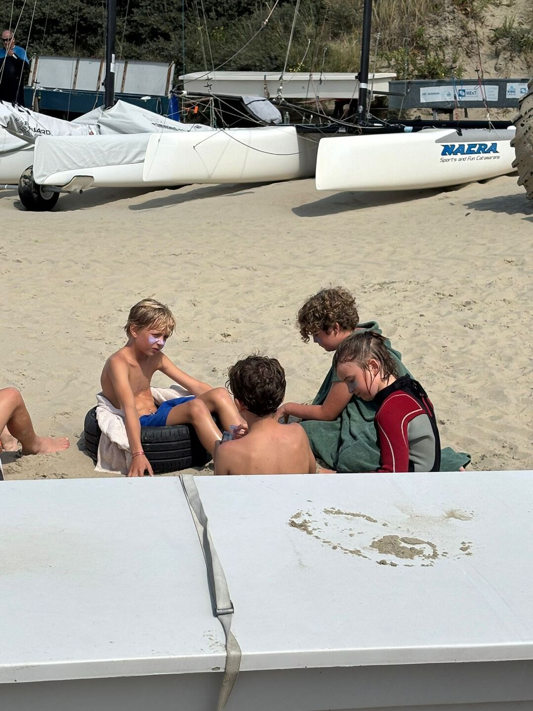 5. Het deponeren van kites, catamarans, surfplanken of zonnebadende familieleden mag niet op de doorgang tussen de boten, dit om een vlot transport te kunnen garanderen.